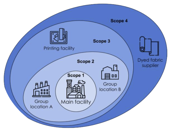 Scope 4: | The main facility + group facility location A and location B+ printing facility (immediate sub-supplier) + dyed fabric supplier (next level of sub-supplier) |